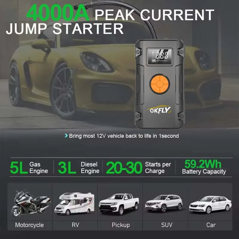 4-en-1 Démarreur de Batterie 4000A avec Compresseur d'Air